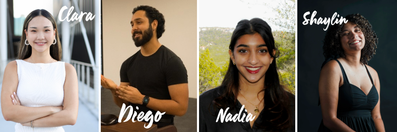 This week, we're going to keep up Robin's highlights and share four more members of our comms team. Please meet Diego Cabriales, our Digital Media Producer and lead videographer, Clara Song, and Nadia Bhaiwala, our Communications & Outreach Associates who help translate our policy into content and get me more face-to-face meetings with students, and Shaylin Romero, our newest campaign videographer who hails from Texas Tech University and is only one of two of us who just graduated!