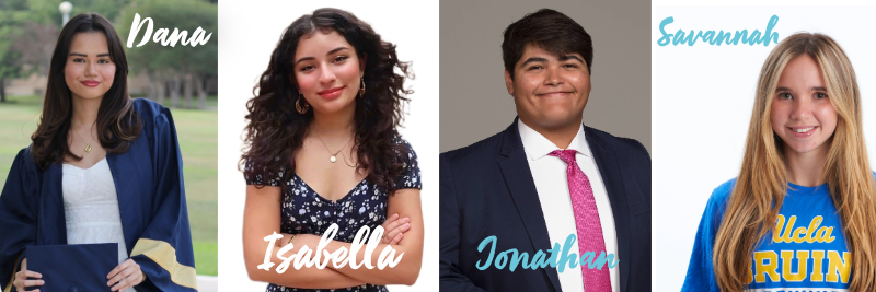 This week, I want to highlight some members of our ultra fabulous comms team, who work daily to push out our message through social media posts and outreach. Please meet Jonathan Perez, the student lead for this dynamic team; Isabella (Isa) Lezama, our Instagram lead on the Longhorns 4 Lerner account; Savannah Cunningham, our LinkedIn strategist; and Dana-Alyssa Suleimen, our TikTok lead content creator.